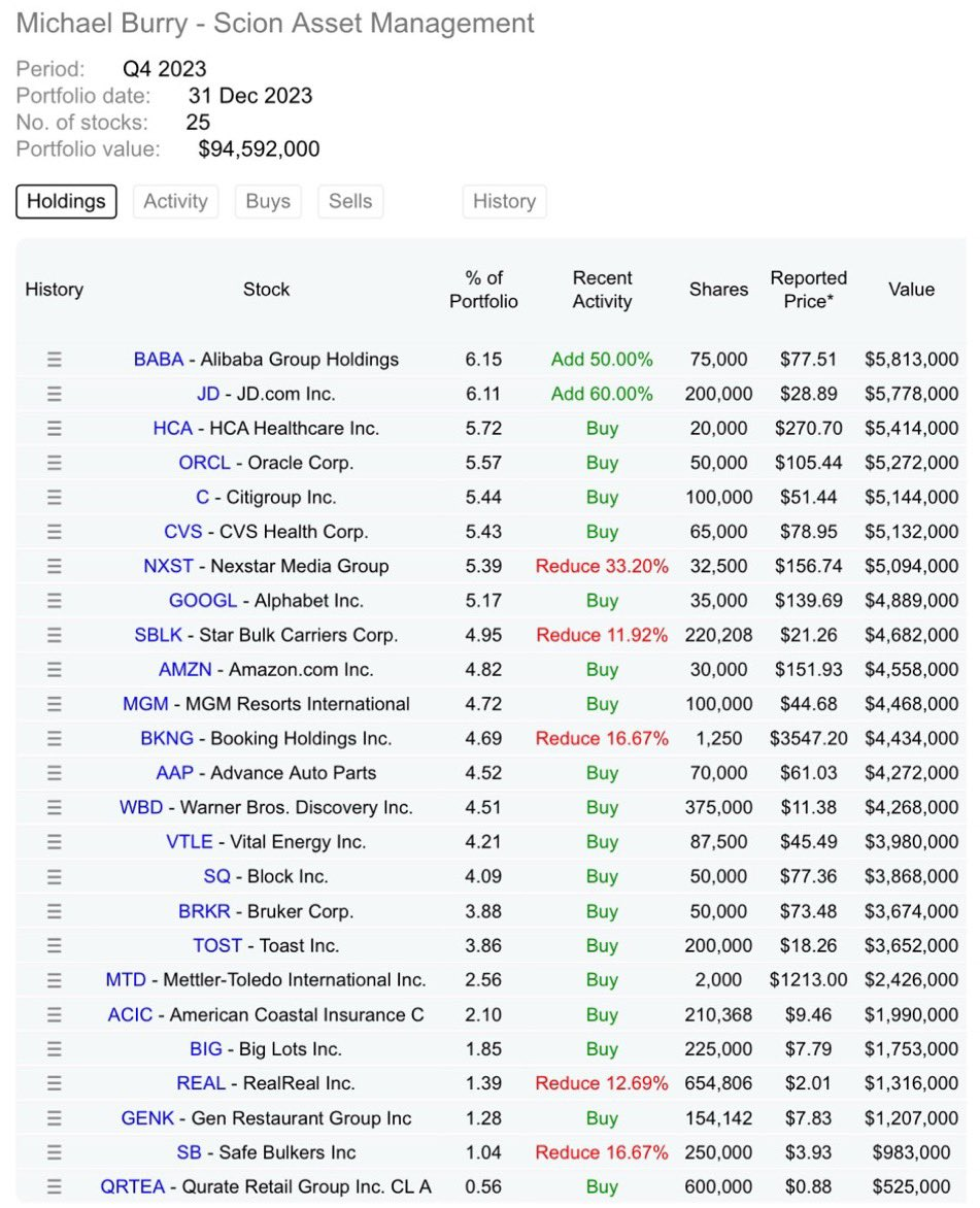 У гражданина Бьюри состав прям таки диверсифицированный, в то время как Баффетт половину сложил в одну панамку.