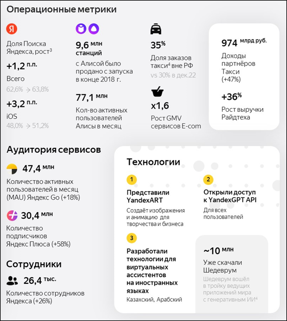 Число подписчиков «Яндекс Плюс» в 4Q 2023 составило 30,4 млн (+58% г/г).