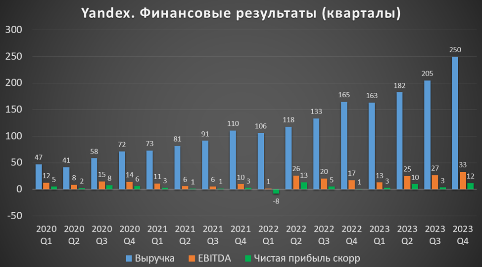 На квартальной диаграмме аналогичная динамика. 4Q 23 показал рост как г/г так и кв/кв.