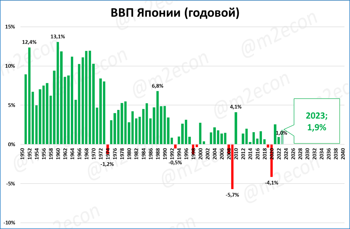 Рост ВВП в Японии по итогам 2023 года: +1,9%