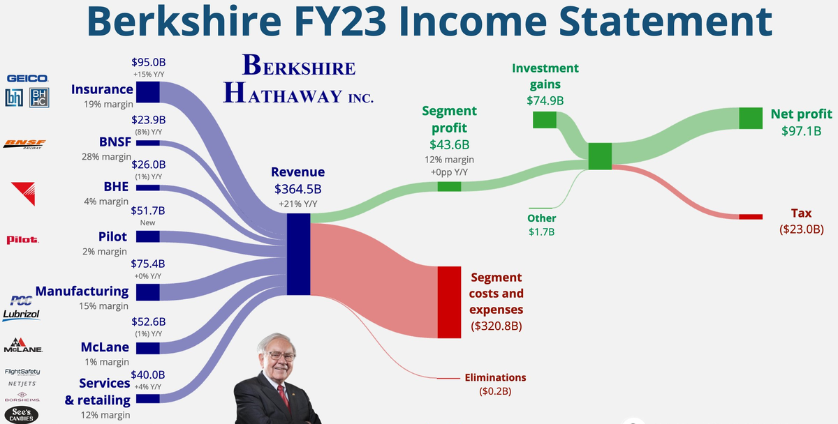 Чистый годовой профит Berkshire Hathaway - 97,1 млрд $