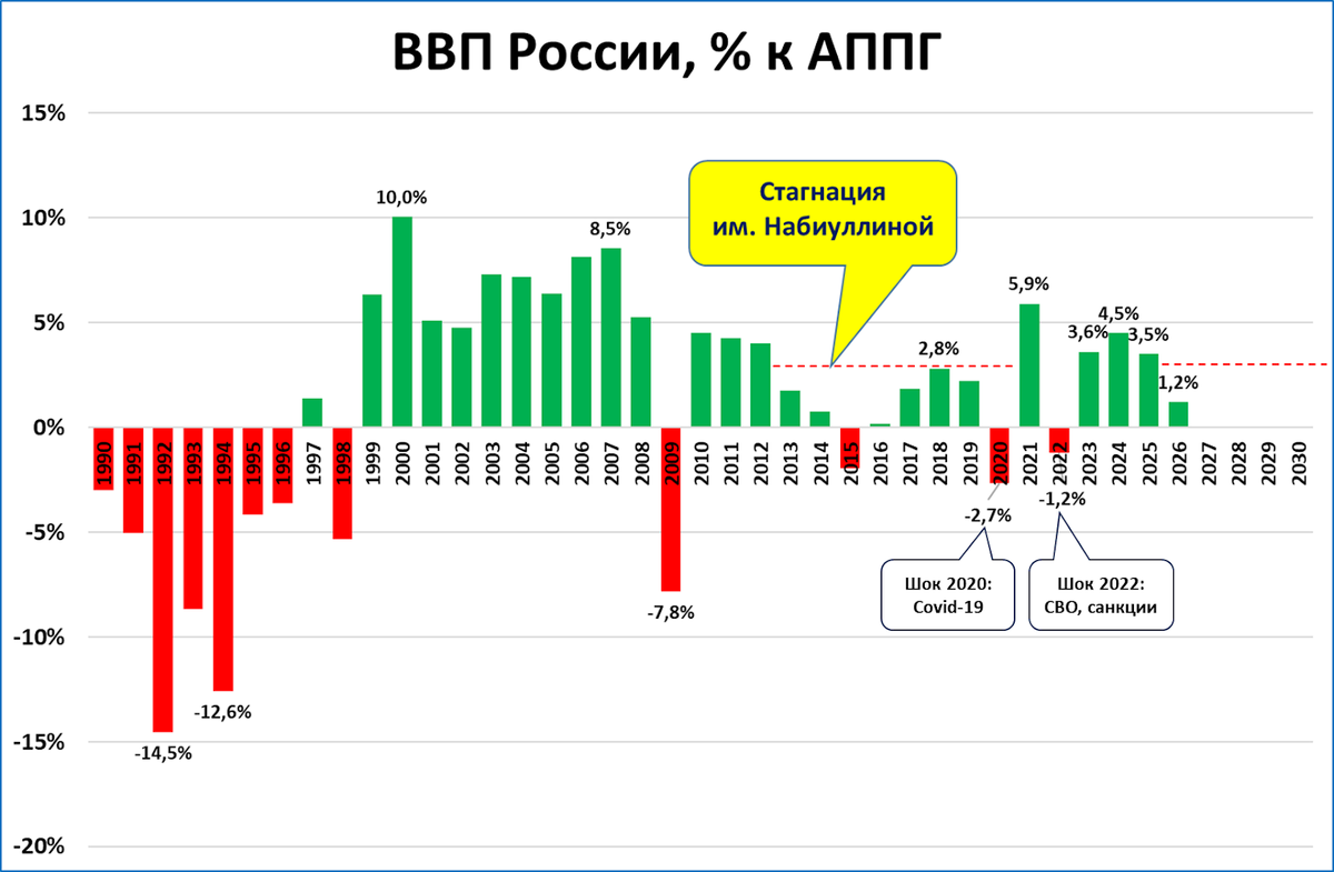 Логика прогноза и расчёты подробно изложены в статье «Прогноз ВВП России на 2024-2026 годы: +4,5% в 2024 году».