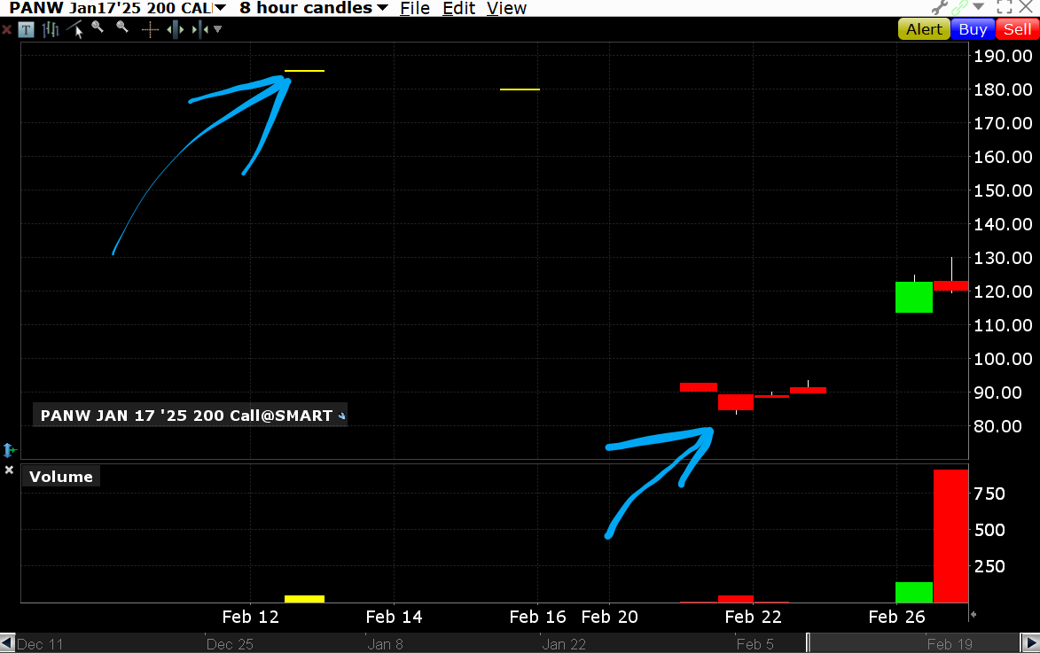 Работает она (Нэнси) снова через опционы. Приобретаются опционы глубоко в деньгах, а именно - колл-опционы со страйком 200 и датой экспирации 17 января 2025. Сейчас цена акций - 316$. Поясню, что колл-опцион со страйком 200 позволяет его держателю в любой момент до экспирации купить акции по цене в 200$.