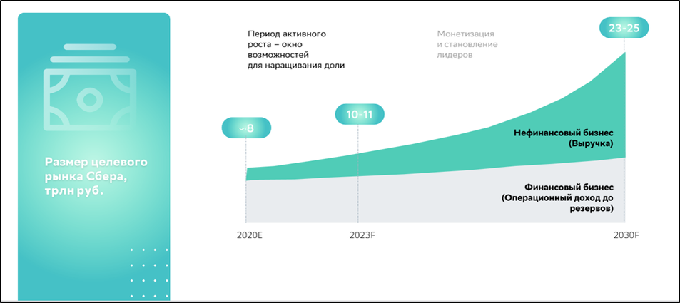 Будущей точкой роста является развитие экосистемы и искусственного интеллекта. Сбербанк прогнозирует, что нефинансовые сервисы будут приносить до трети операционного дохода к 2030 году.