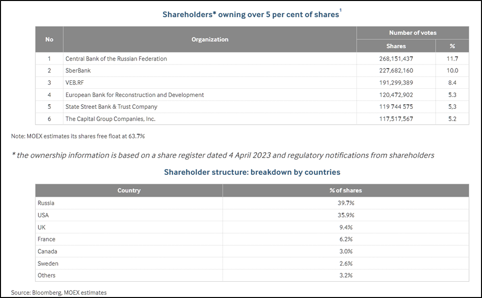 11,7% акций принадлежит ЦБ РФ; 10% Сберу; 8,4% ВЭБ РФ. Фрифлоат 63,7%. Всего 39,7% акций принадлежит российским инвесторам, остальные иностранным.
