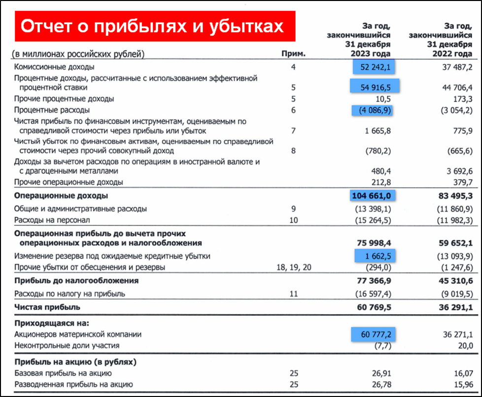 Финансовые результаты за 2023 рекордные. Благодаря сильному росту ЧКД и ЧПД и роспуску резервов.
