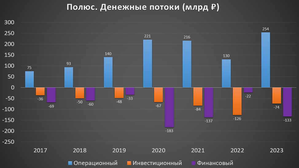 Из диаграммы видно, что операционный поток в 2023 году рекордный.