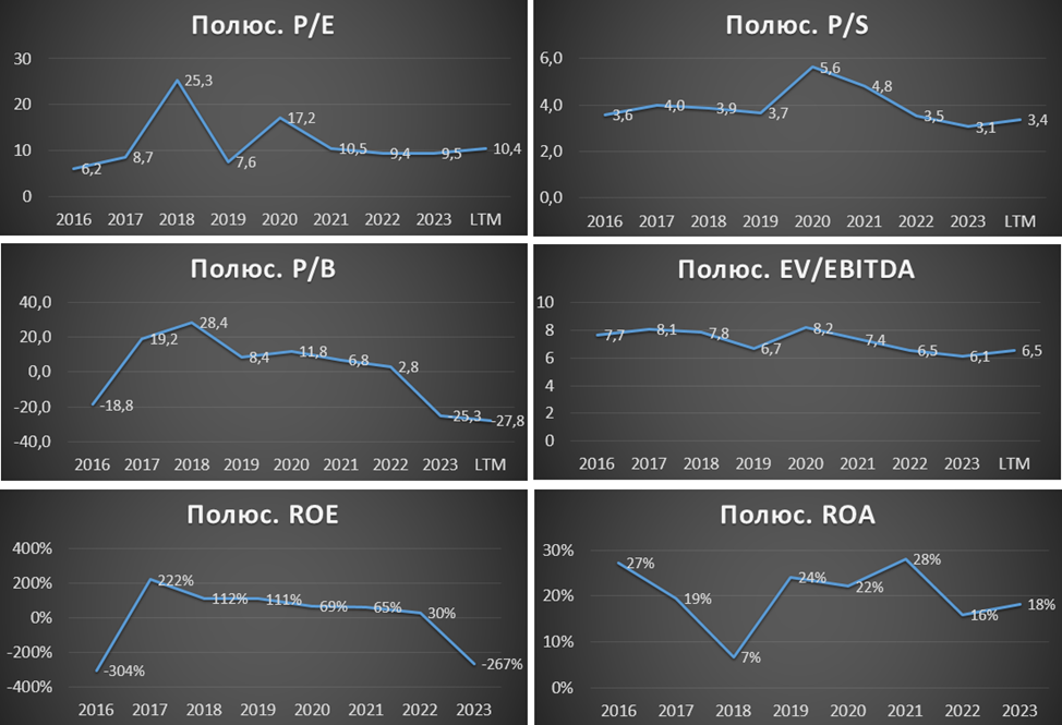 По текущим мультипликаторам Полюс оценен недёшево, но средне относительно своих исторических значений. При этом нельзя забывать, что бизнес компании может существенно увеличится через 5-7 лет.