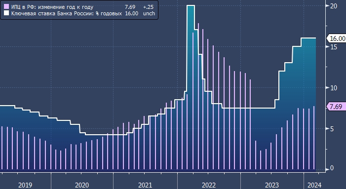 "Я персонально считаю, что Центральному банку или совету директоров Банка России необходимо увидеть как минимум три месяца стабильно текущей инфляции на уровне таргета... Когда это будет? Дай бог, чтобы это был март-апрель-май с тем, чтобы войти в цикл снижения как раз во втором полугодии, но с учетом очень волатильной инфляции в России, с учетом аспекта по неснижающемуся спросу - и потребительскому, и кредитному, возможно, нам этого периода придется ожидать дольше", - рассказал Пьянов журналистам.