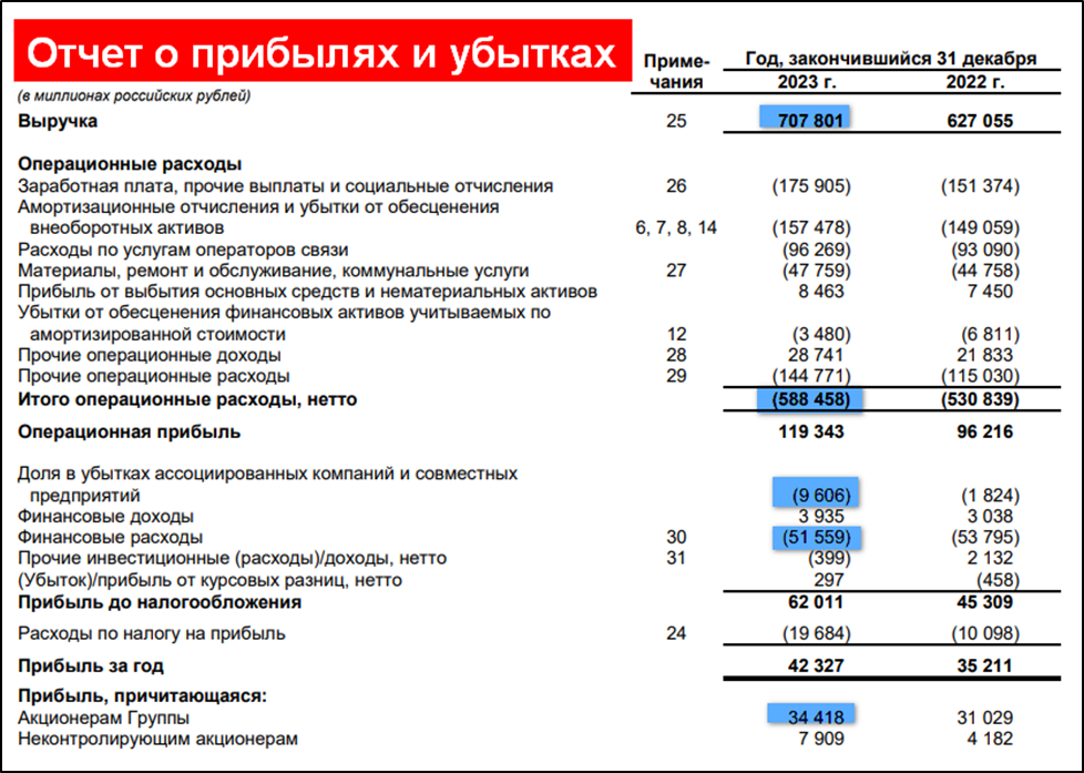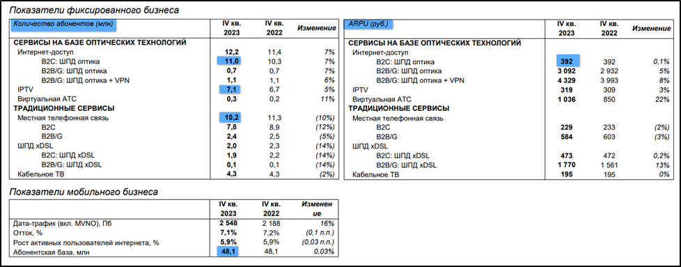 Результаты за 2023г. позитивные, в основном благодаря росту тарифов и развитию цифровых сервисов: