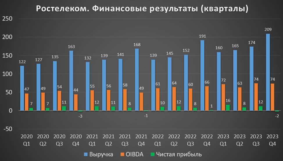 27.02.24 президент компании Михаил Осеевский заявил, что OIBDA 2024 превысит 300 млрд, т.е. рост как минимум, на 6% г/г.