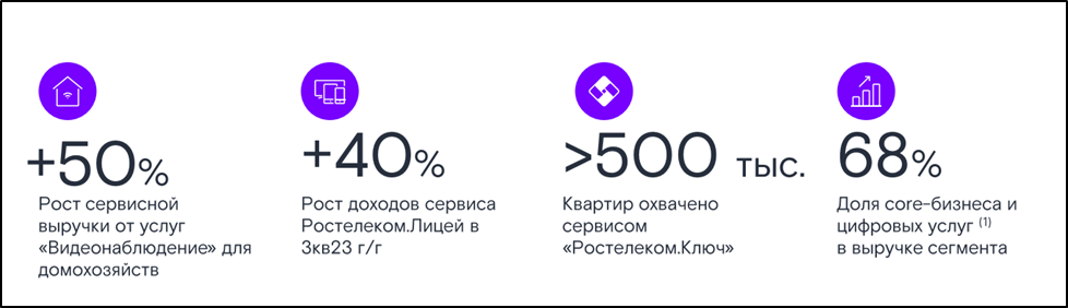 Перспективы компания связывает с развитием не только традиционного телеком бизнеса, но и других сервисов. И текущий отчет показывает их рост. Ростелеком продолжил расширять перечень предлагаемых сервисов, в том числе в области ИТ, информационной безопасности, облачных продуктов.
