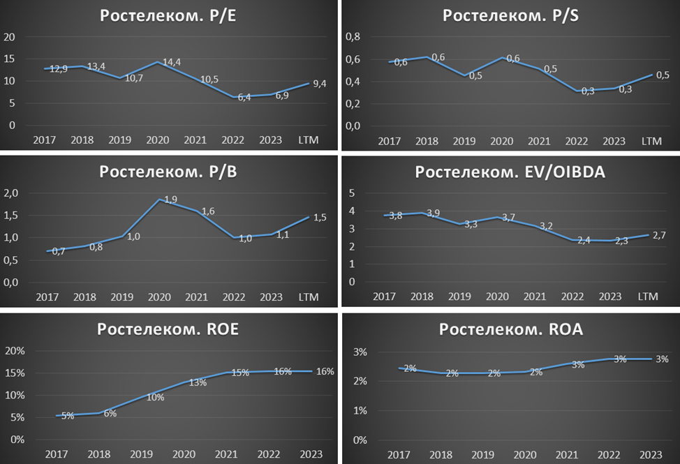 Финансовые результаты 2023 рекордные благодаря росту тарифов и развитию цифровых сервисов. Но в 4Q 23 компания отразила небольшой убыток. Последние 5 лет у Ростелекома темпы роста финансовых показателей на уровне 20% в год.