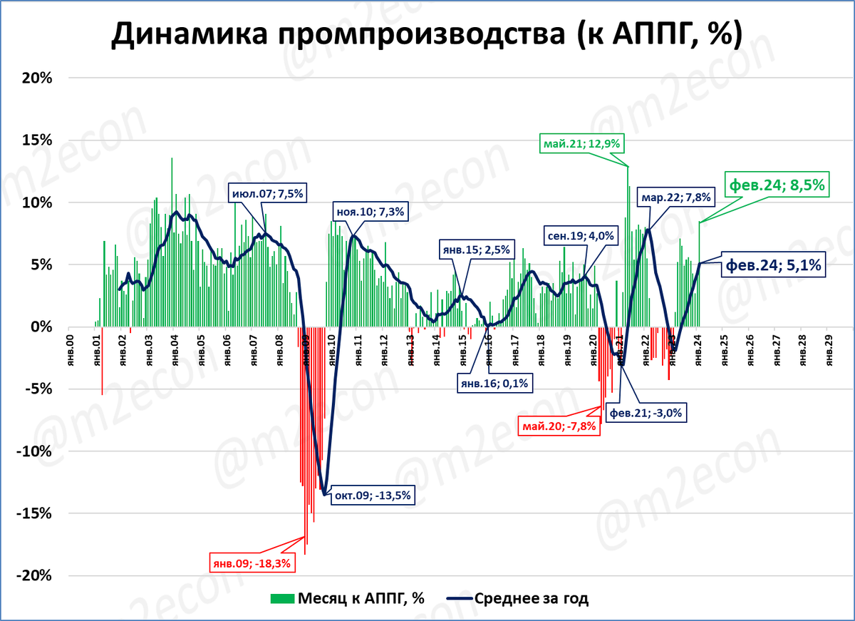 Промпроизводство (это около 30% ВВП) в феврале выросло на +8,5%.