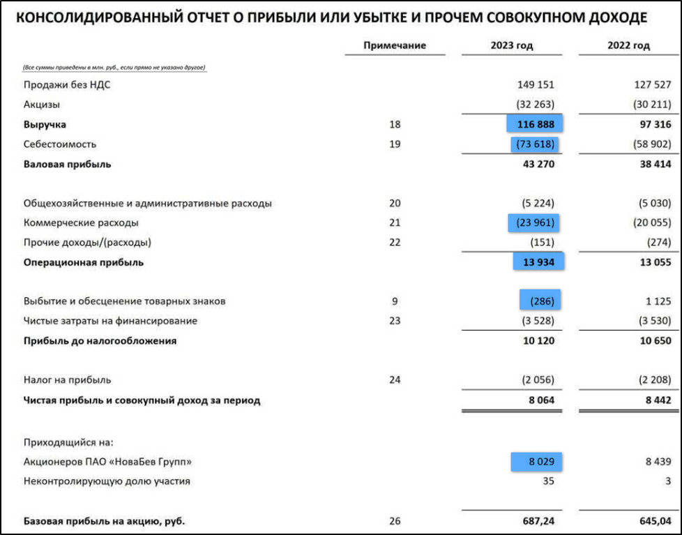 Чистая прибыль (ЧП) 8 млрд (-5% г/г). ЧП даже немного снизилась из-за разового фактора - обесценение товарных знаков на 0,28 млрд (а в 2022 году был плюс 1,1 млрд)