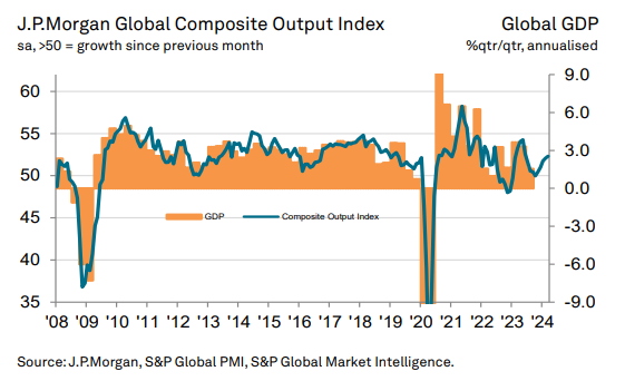 Рост деловой активности в целом по мировой экономике продолжается 14-й месяц подряд, с февраля 2023 года.