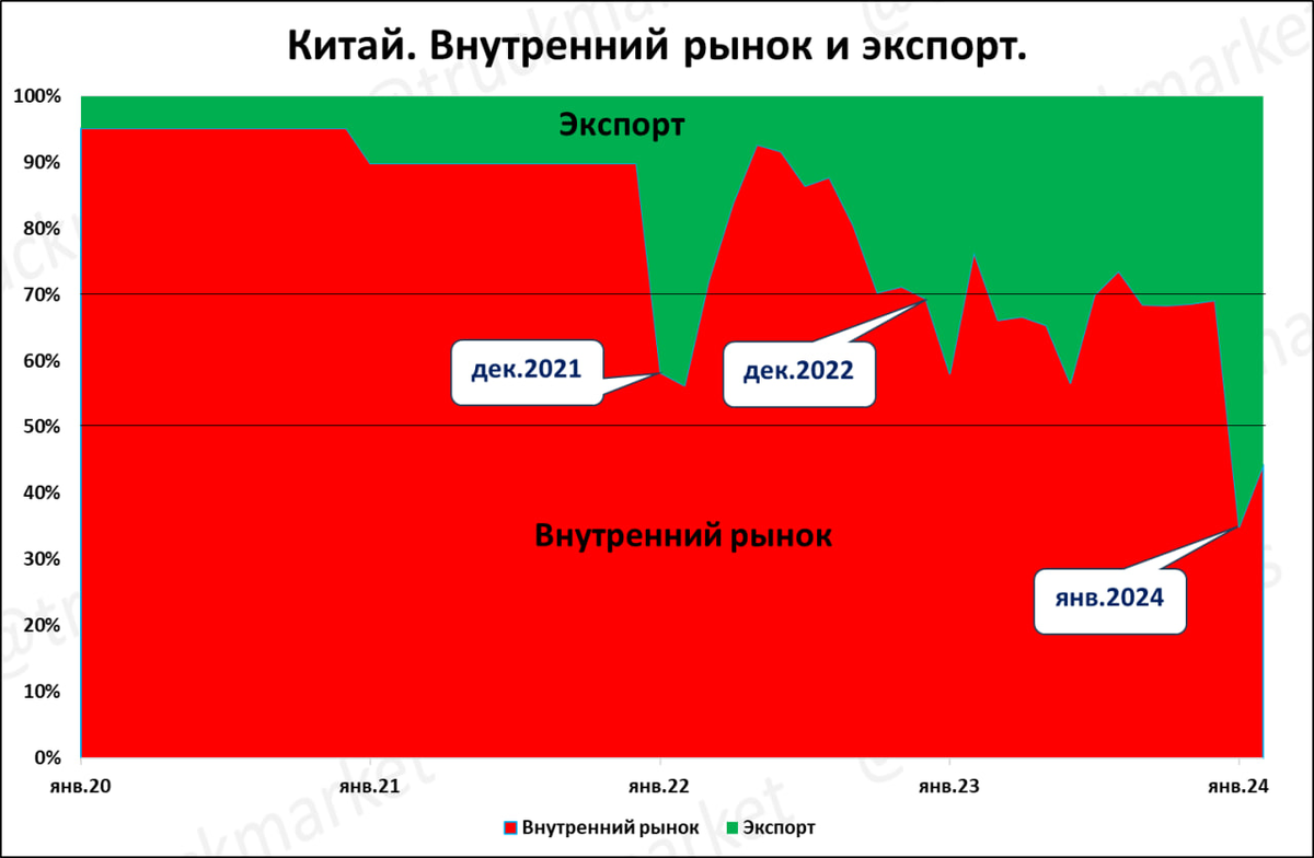 Стоит также отметить, что в 2024 году (январь-февраль) продажи на экспорт впервые в истории стали больше продаж на внутреннем рынке.