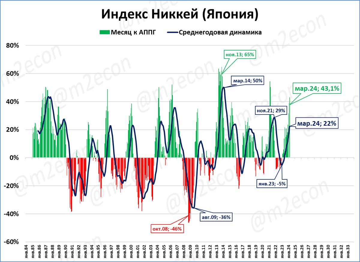 Рост индекса Никкей в годовом выражении продолжается уже 14-й месяц подряд.