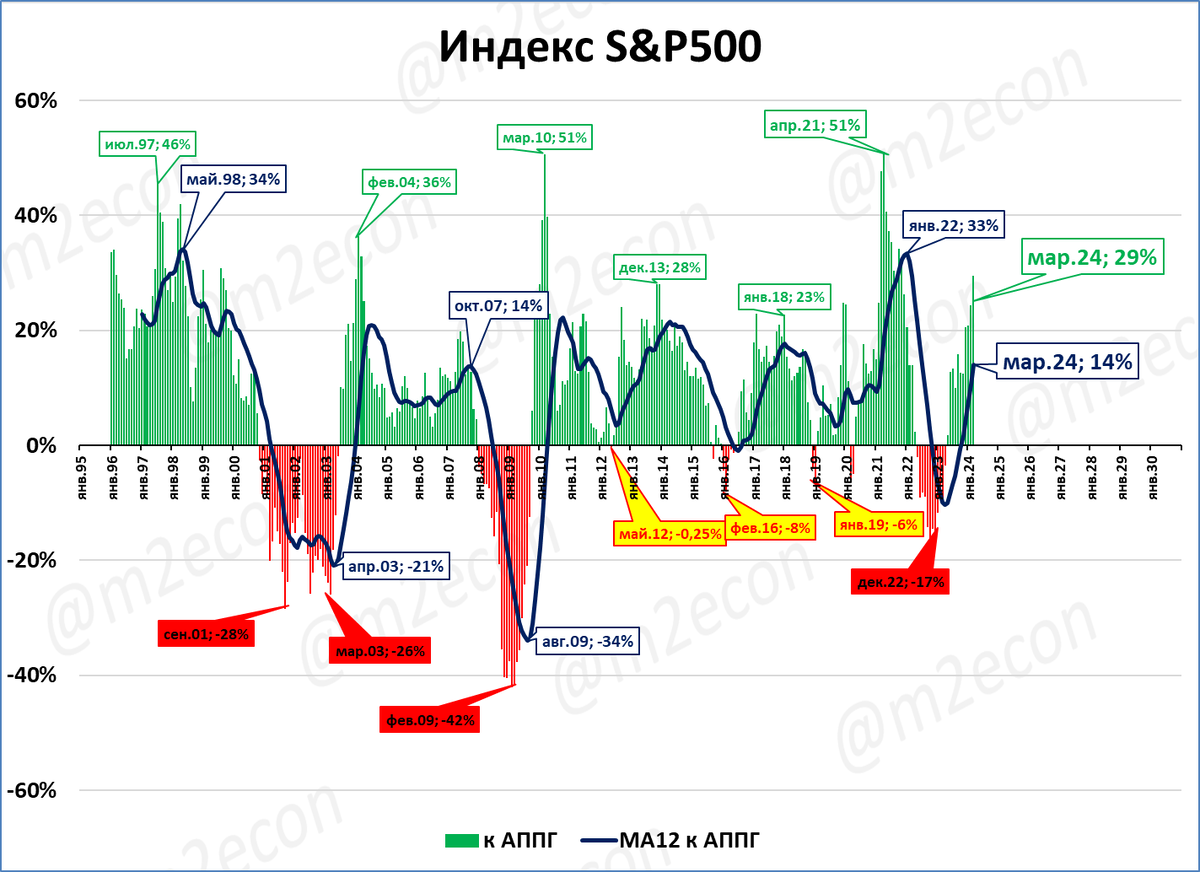 Среднегодовые темпы развернулись и движутся к зеленой зоне, но пока остаются отрицательными (-13%).