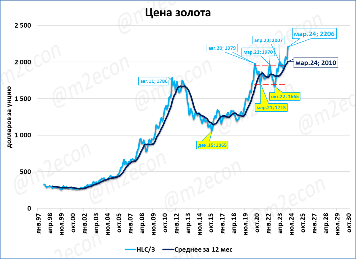 Средняя цена унции золота в марте установила новый исторический рекорд (2 206$/унция).