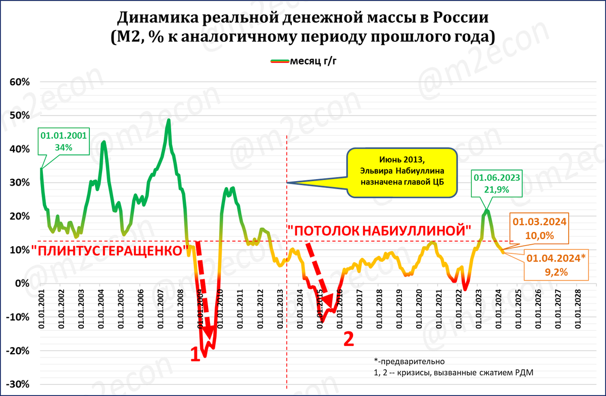 Сейчас мы видим в экономических данных отголоски того роста РДМ, когда Набиуллина временно пробила свой "потолок". На 1 марта рост, по нашей оценке, составил 10,0% - замедление продолжается.