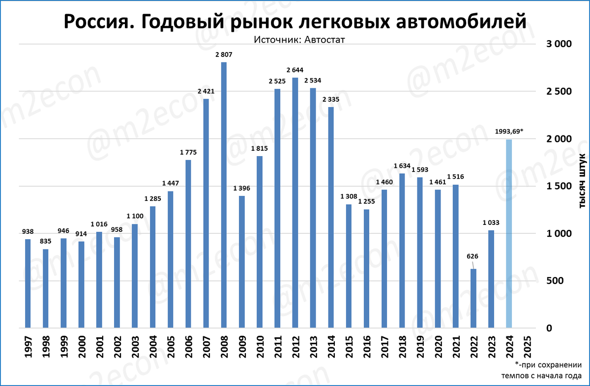 Если текущие темпы (-8%) сохранятся, по итогам года продажи составят 837 тыс.шт.