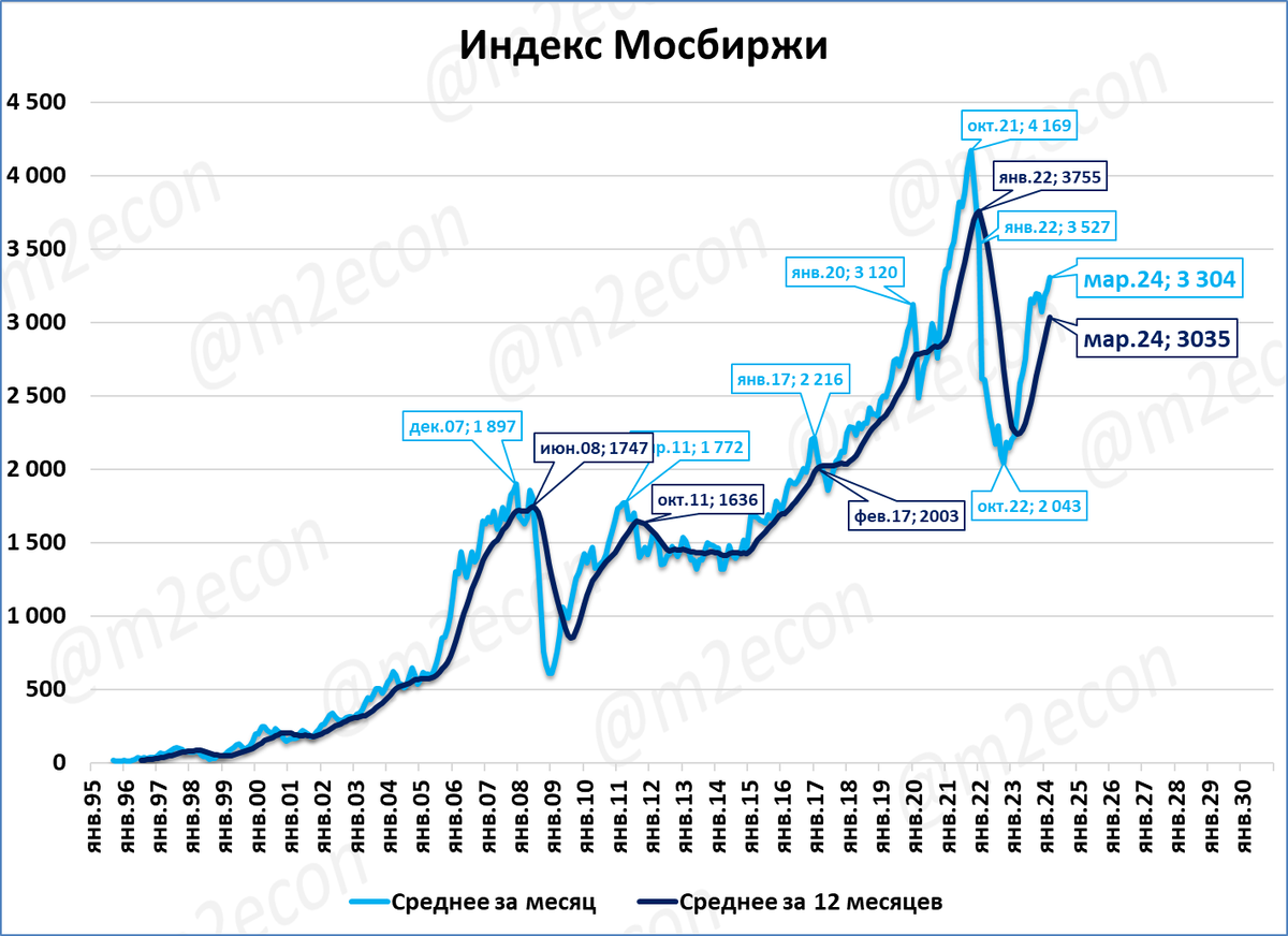 Индекс Мосбиржи: 3 304 пункта в марте, +38%
