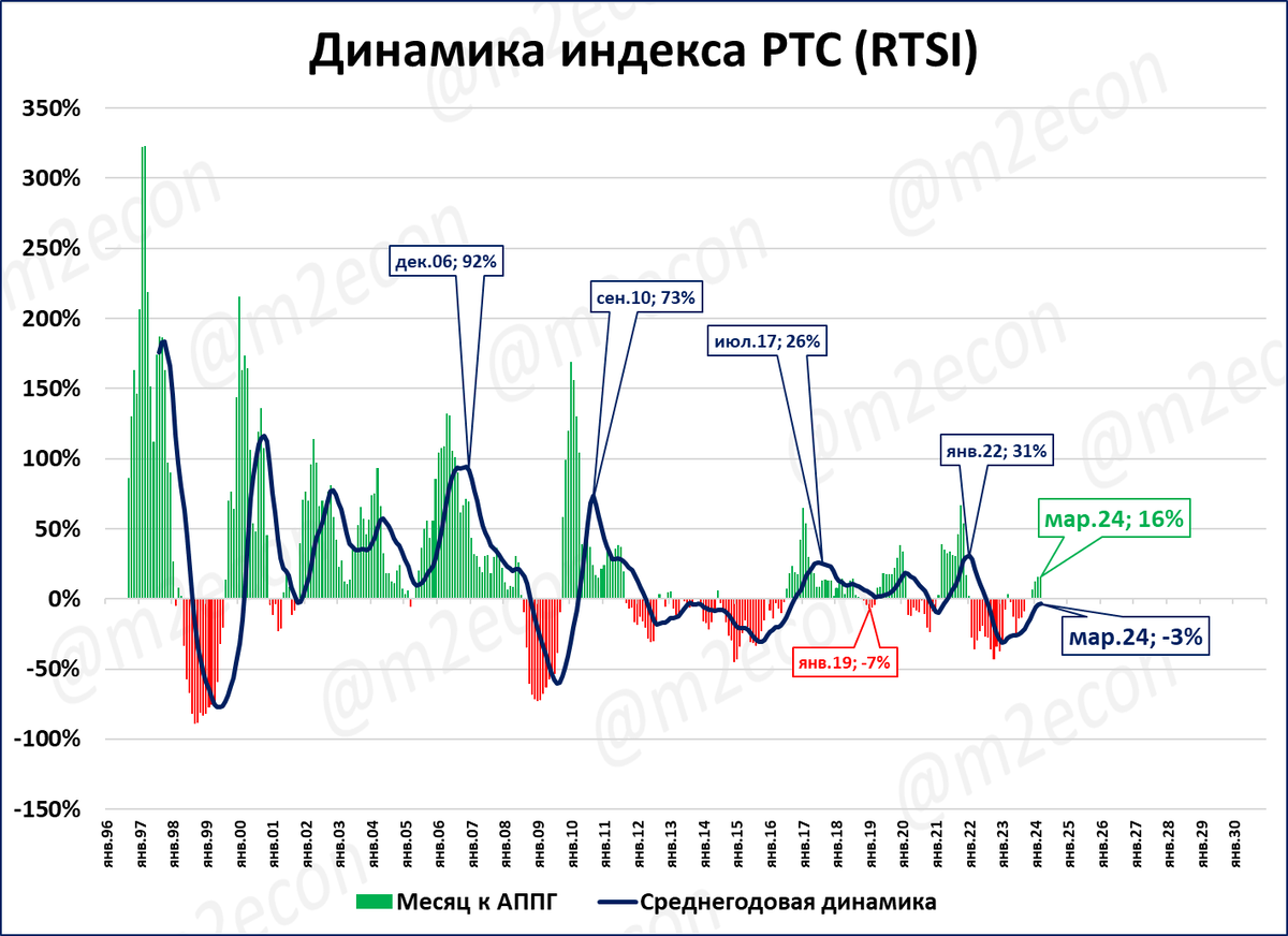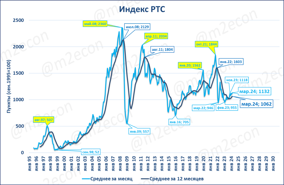 Индекс РТС на 16% выше, чем в марте прошлого года.