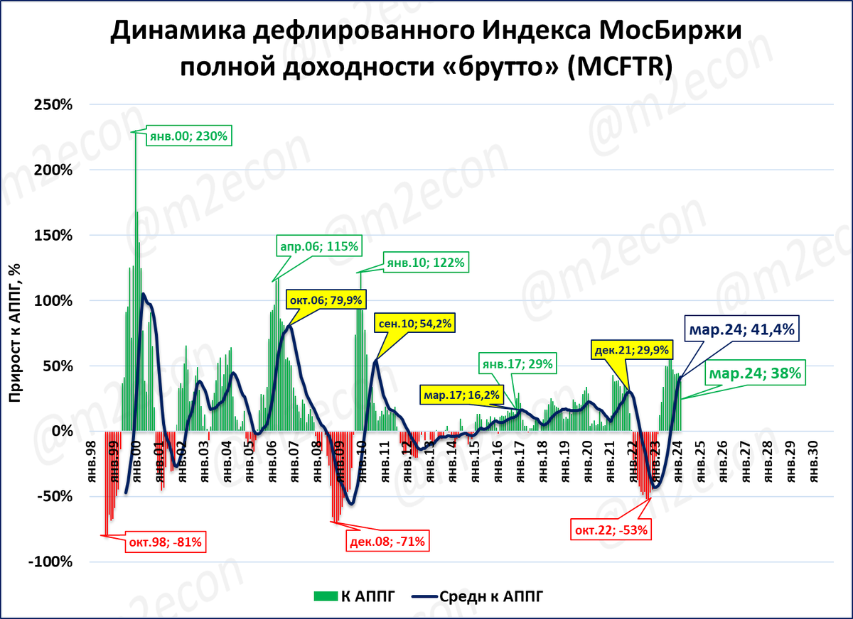 Реальный индекс полной доходности растёт в годовом выражении 12-й месяц подряд.