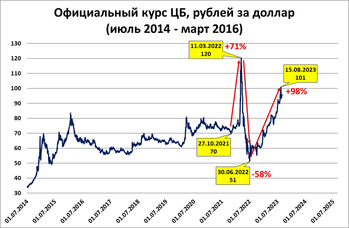 Пользуясь этим ЦБ игнорирует курсовые колебания. В результате колебания курса рубля относительно доллара чрезмерно велики.