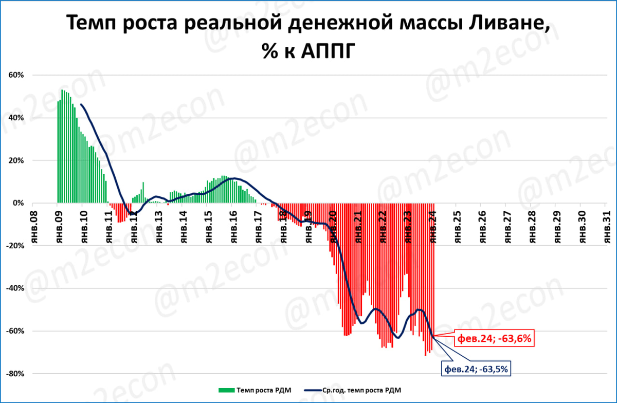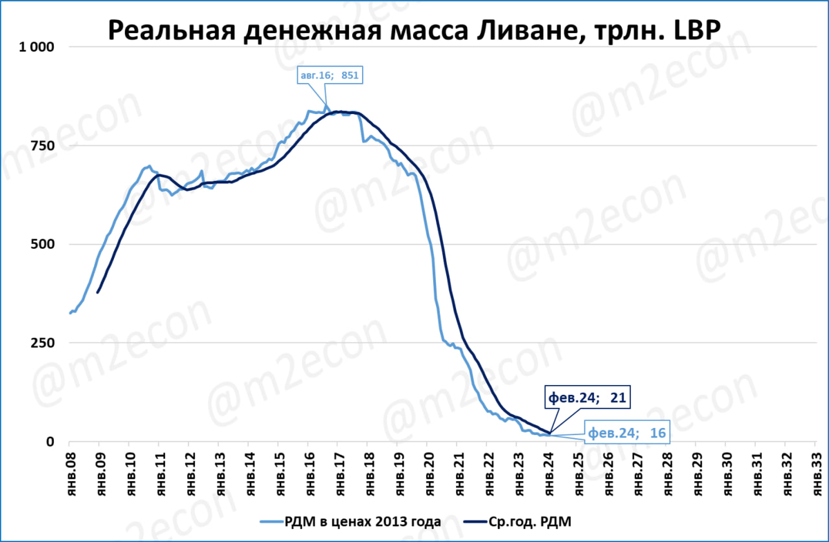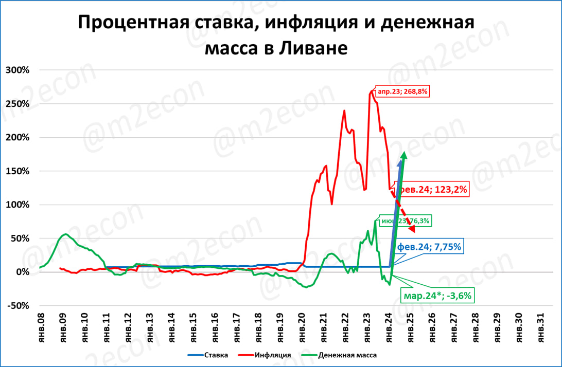 Сейчас появился новый повод заглянуть в данные по Ливану. Агентство Блумберг выпустило заметку под громким заголовком "Ливан переживает приток наличности после того, как денежная масса выросла на 400% всего за один месяц".