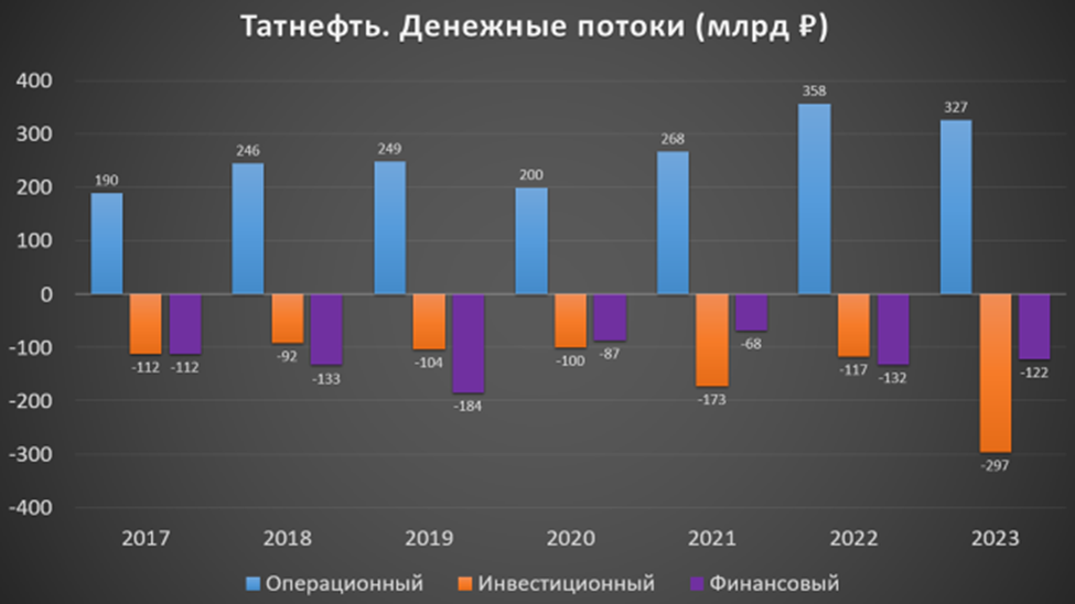 операционная деятельность 326,6 млрд (-9% г/г). Именно столько денег поступило в компанию за год.