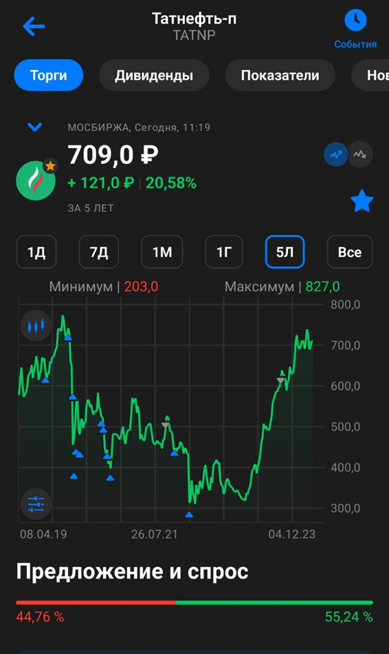 Я продал акции Татнефти в сентябре 2023 года, забрав основное движение. Прибыль составила 80%, не считая полученных дивидендов. На данный момент из нефтяников предпочитаю держать Лукойл и Сургутнефтегаз.