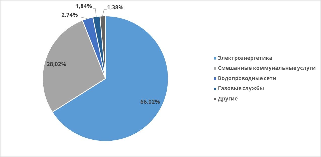 В отраслевом разрезе большая часть компаний фонда работает в секторе электроэнергетики (66%), а около 28% предоставляет смешанные коммунальные услуги.