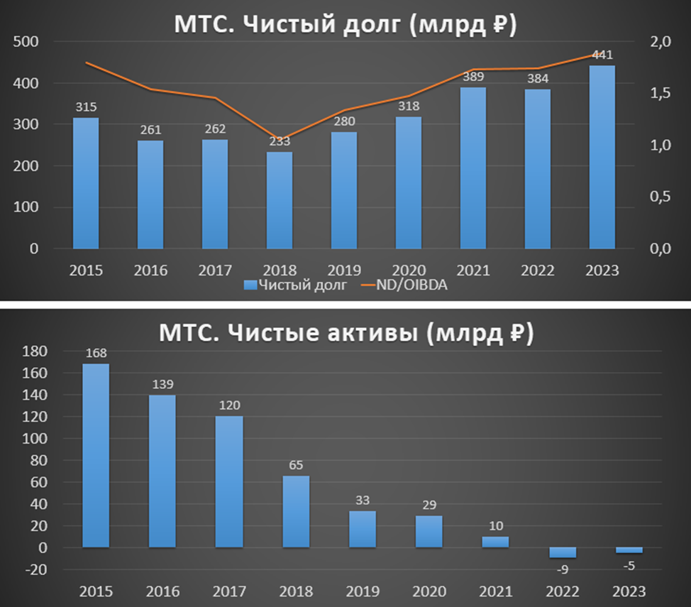 МТС платит высокие дивиденды за счет роста долговой нагрузки. Бесконечно эта ситуация продолжаться не может. Для уменьшения долга МТС рассматривает продажу своего башенного бизнеса и IPO дочерних компаний. В частности, в 2024 году планируется IPO МТС банка.