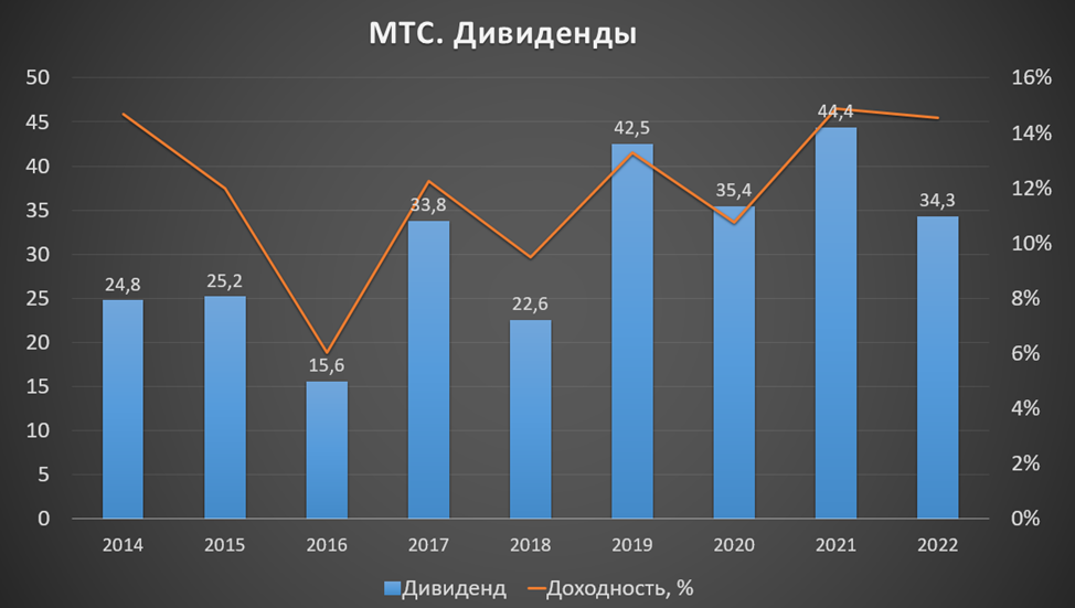 МТС отложила принятие новой дивидендной политики. Если допустить, что на дивиденды уйдет 100% от ЧП по МСФО, то можно ожидать 27,3₽ на акцию. Это 9% к текущей цене акции, что не так уж и много. Но скорее всего, итоговые дивиденды за 2023 год снова превысят чистую прибыль и будут выплачены за счет дальнейшего роста долговой нагрузки. Думаю, что можно ориентироваться на 34₽, это 11% доходности.