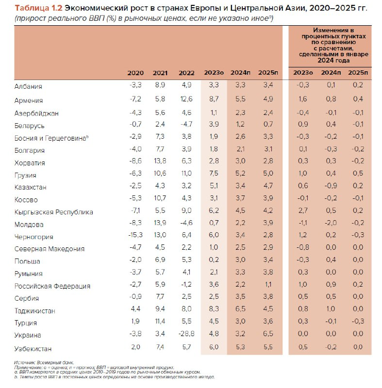 Прогноз по России и другим странам Европы и Центральной Азии приведён в таблице.