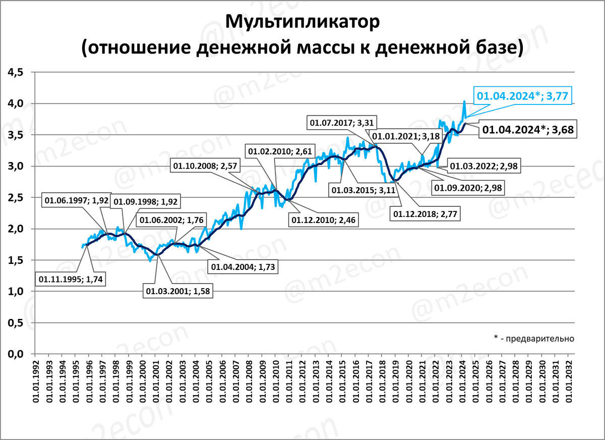 Месяц назад денежный мультипликатор установил исторический рекорд (4,04).