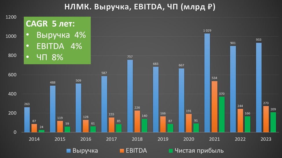 На годовом горизонте видно, что прошлый год по финансовым результатам уступает только 2021 году, когда цены на сталь были рекордными.