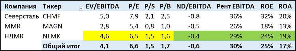 НЛМК по мультипликаторам оценивается чуть дешевле Северстали. Но существенно дороже ММК.
