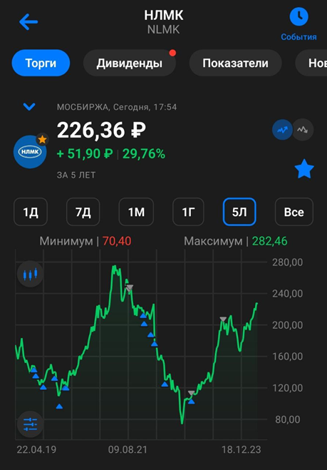 В августе 2023 года я продал акции НЛМК с прибылью. С тех пор пока не инвестировал в эту компанию в первую очередь по причине более высоких санкционных рисков, чем у остальных металлургов. На данный момент держу позицию по ММК.