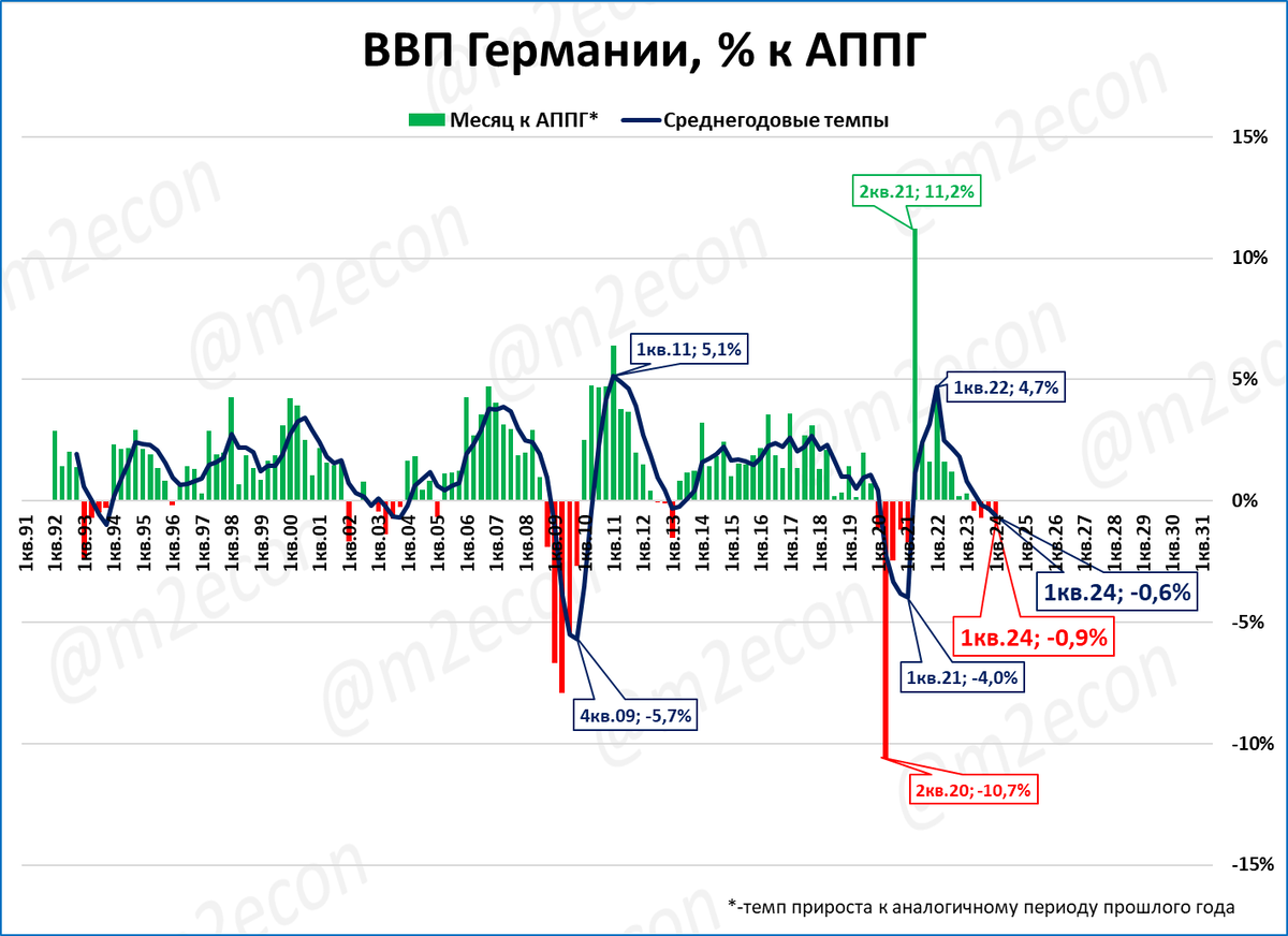 1. 📉 Падение ВВП в Германии ускорилось и длится уже четвёртый квартал.