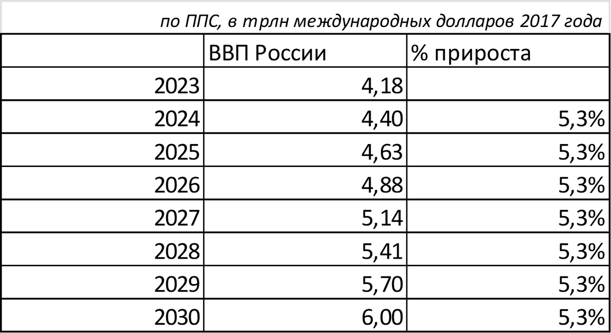 Но это не так. Всё легко считается. Для выполнения новой цели необходим рост ежегодно на 5,3% до 2030 года включительно.