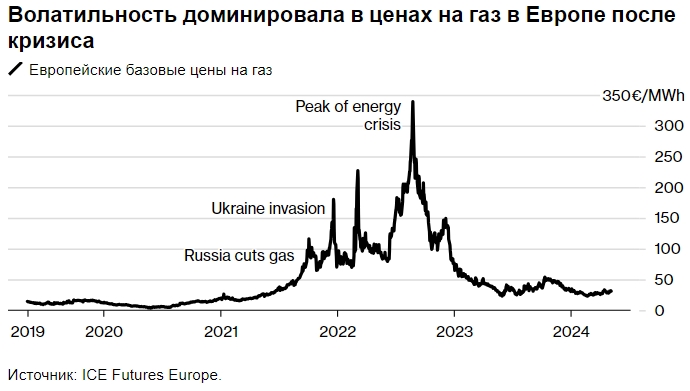 Волатильность преобладает в европейских ценах на газ с момента кризиса. Источник: ICE Futures Europe
