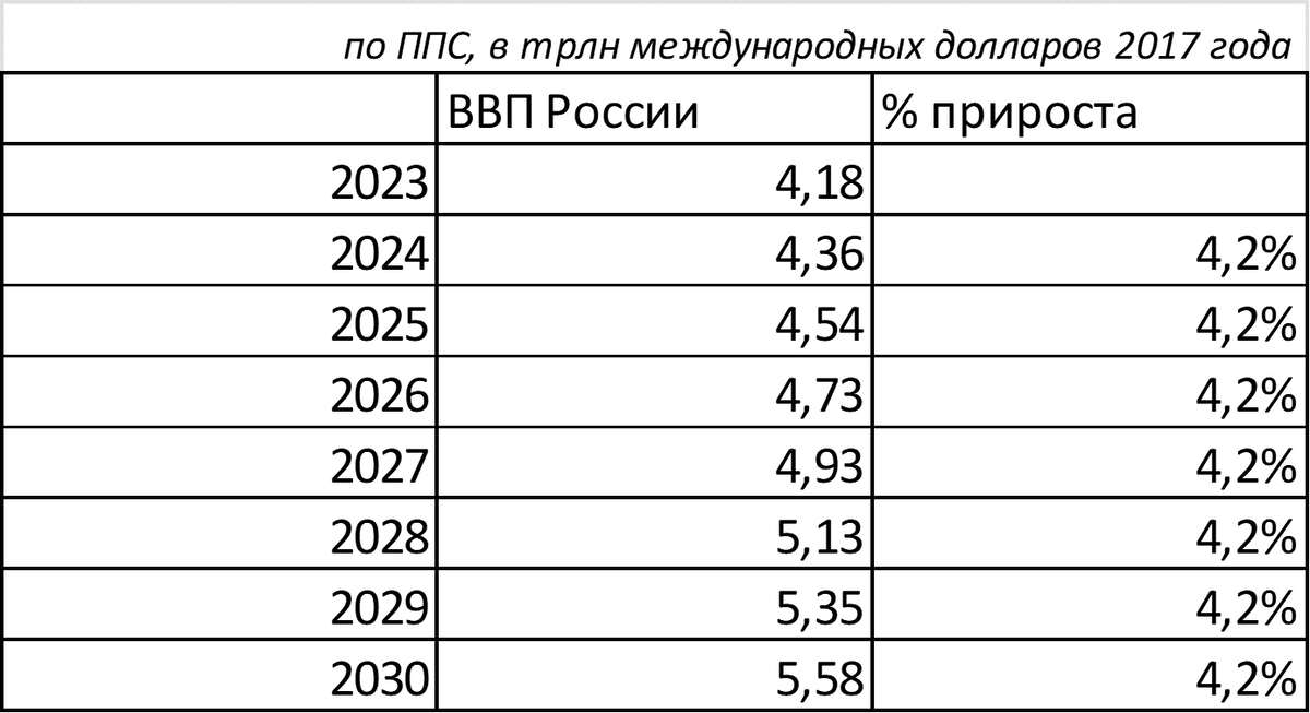 Чтобы оказаться на 4 месте, надо обойти Японию (показано красной стрелкой, куда надо прийти). С небольшим запасом необходимо выйти на ВВП по ППС размером 6 трлн.