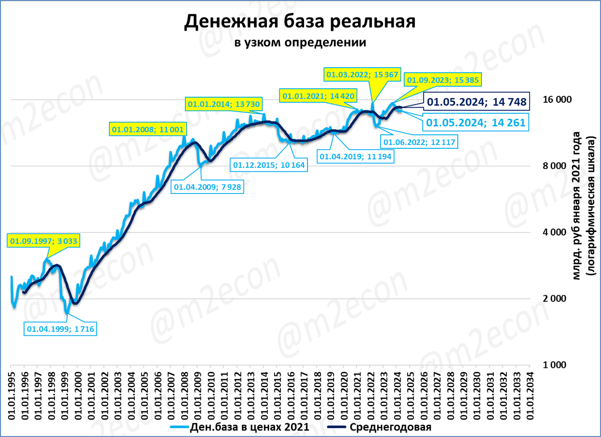В реальном выражении узкой денежной базе далеко до рекордов.