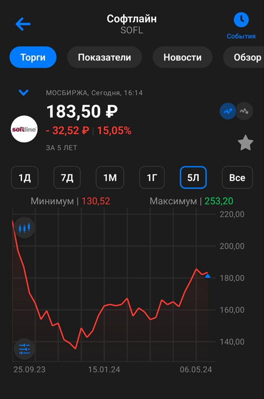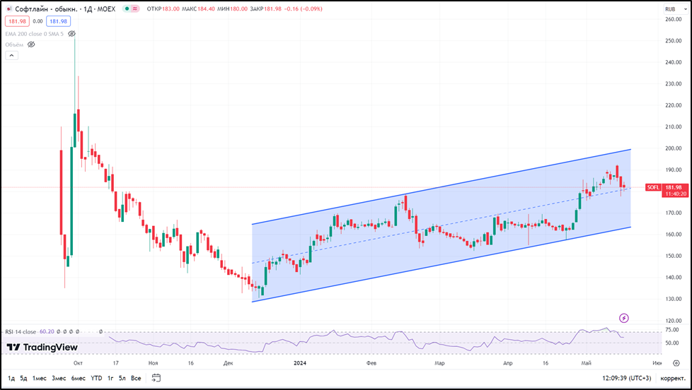 С 26.09.2023 на Московской бирже стартовали торги акциями Российского ПАО Софтлайн (ранее торговались расписки Noventiq). На данный момент котировки находятся ниже цены размещения. Но с декабря 2023г идёт восходящий тренд. За это время акции выросли примерно на 40%.