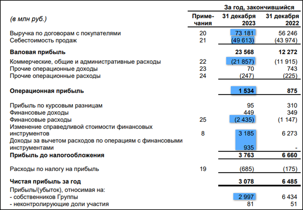 Т.к. компания раскрыла очень усеченные данные за 1Q 2024, то для полного понимания картины для начала посмотрим на результаты по итогам 2023 года: