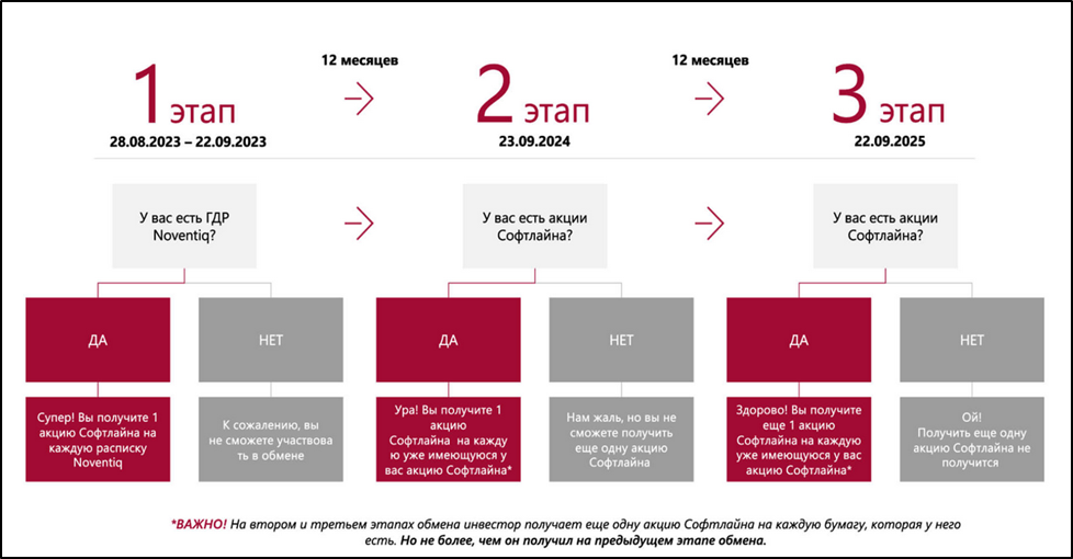 В октябре 2022 года международная компания Softline Holding завершила разделение бизнеса на международную и российскую части. Международная часть бизнеса в дальнейшем стала называться Noventiq, российская — «Софтлайн».
