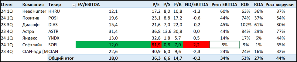 Софтлайн – компания роста, поэтому по мультипликаторам оценена недёшево: